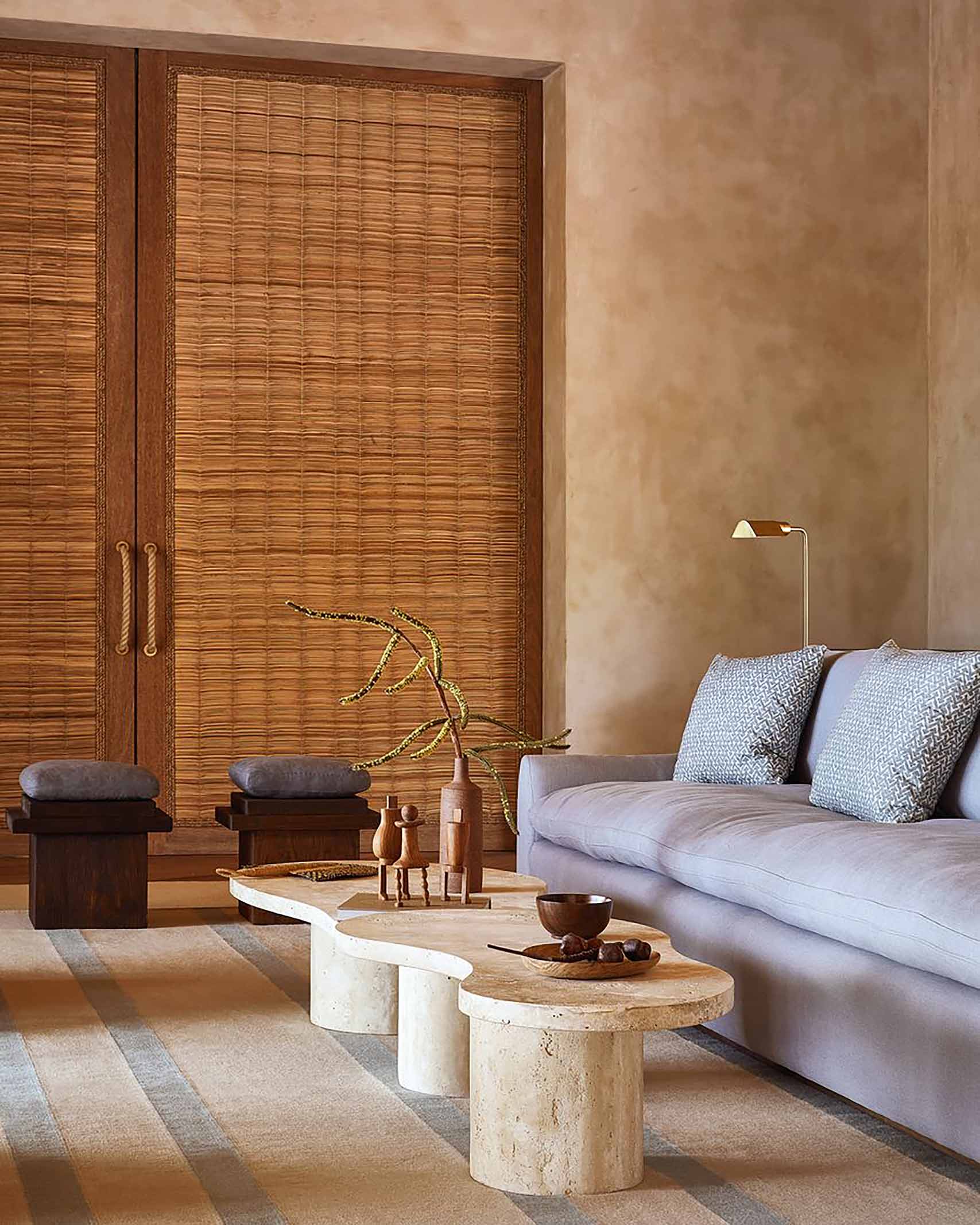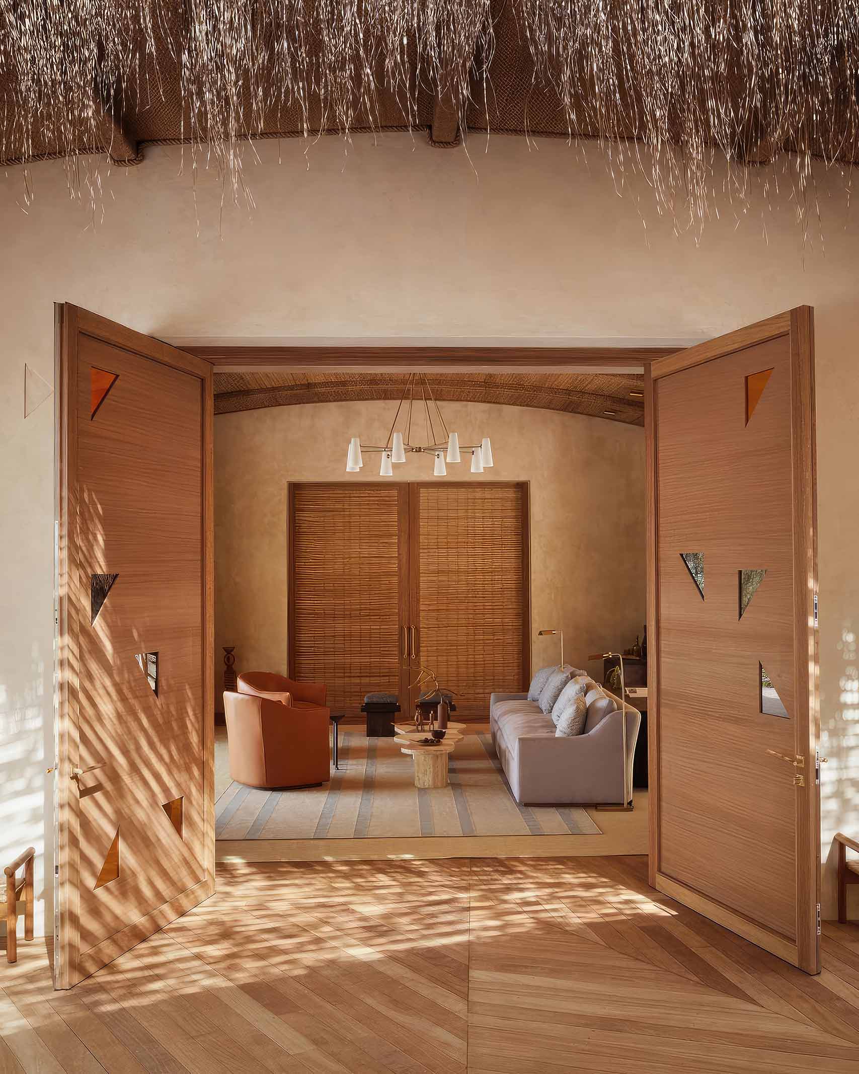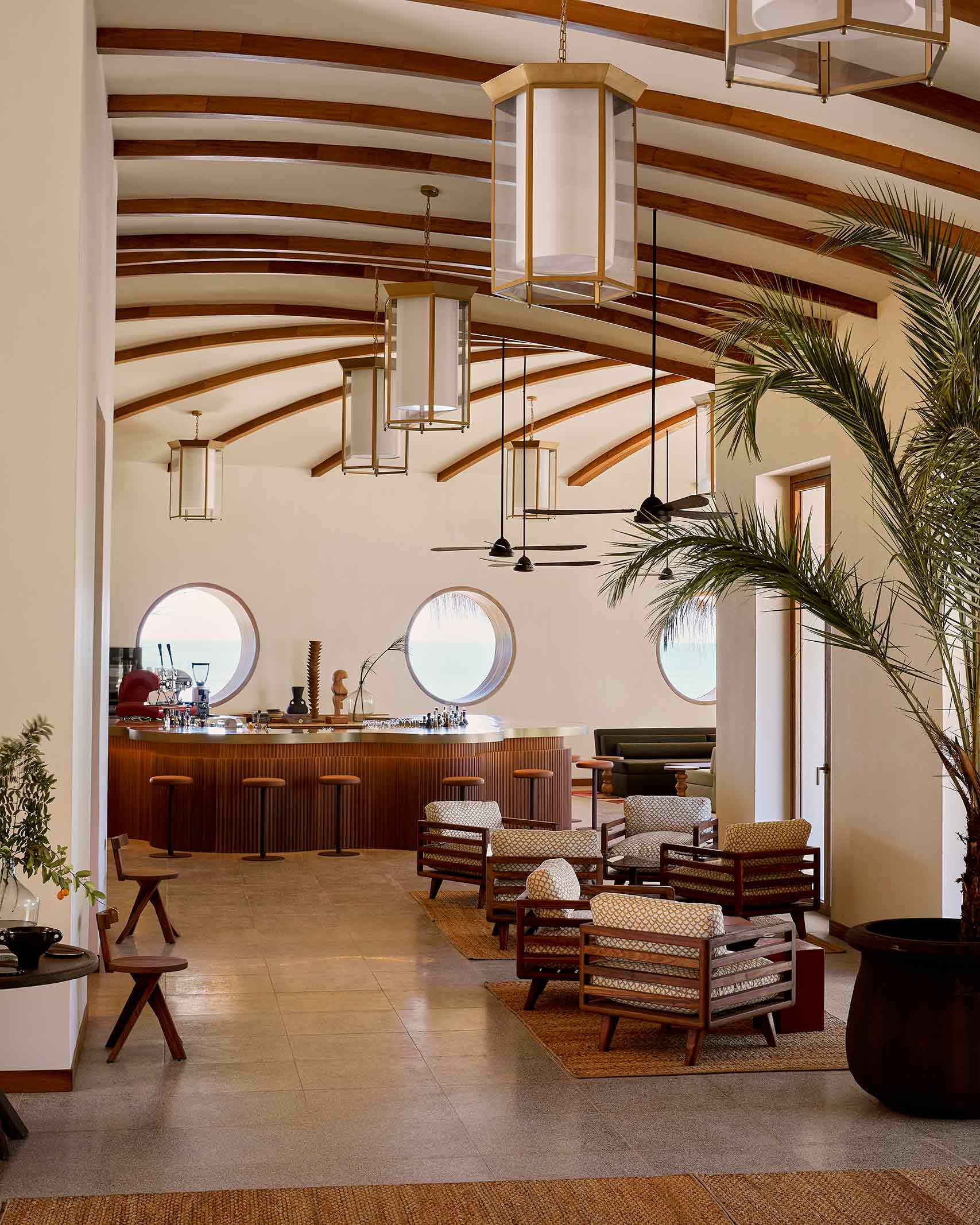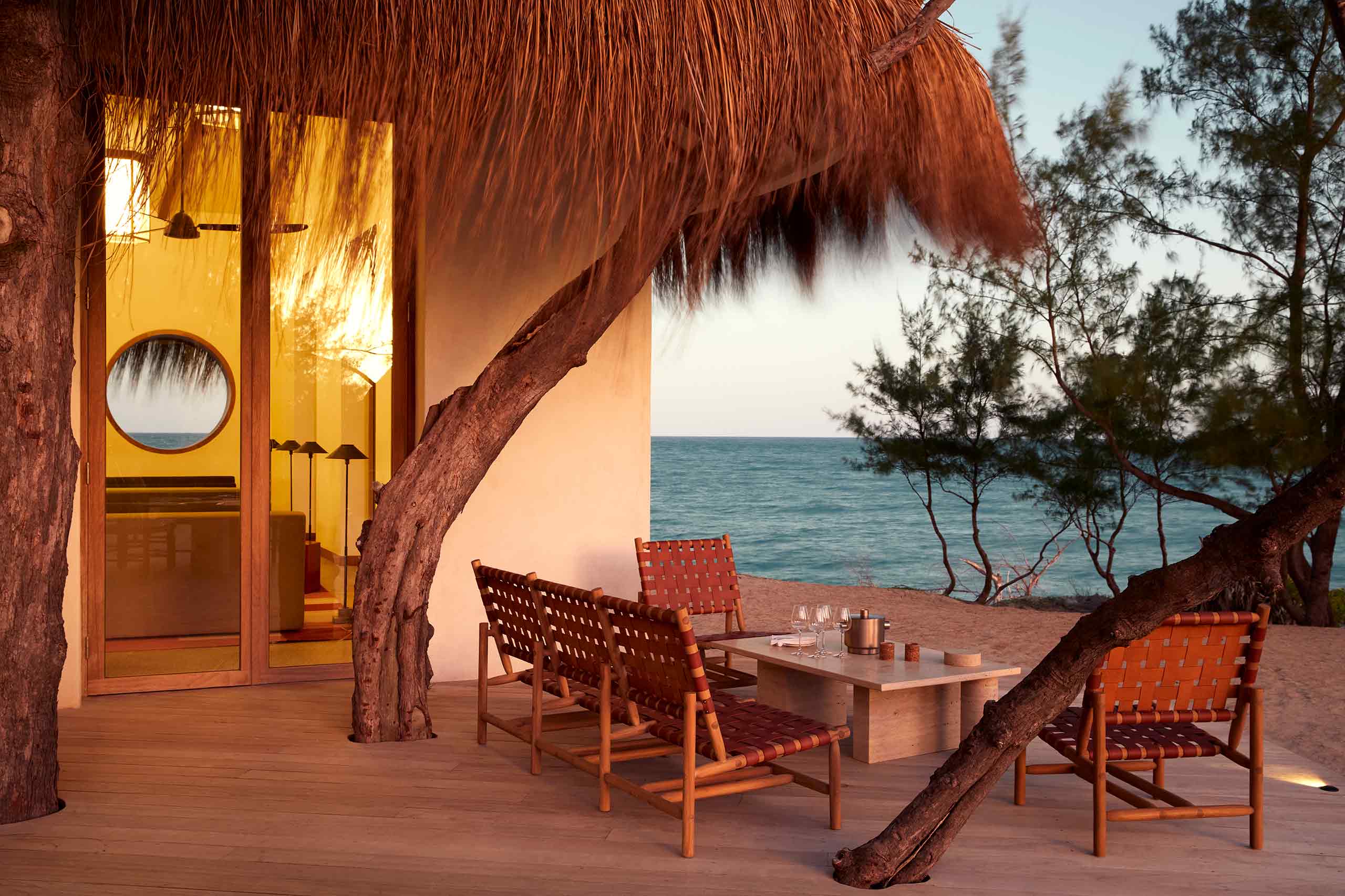 Plotted among eggshell-white sand dunes and coastal forests of whistling pines and milkwood trees, the residences, conjured by Flohr and her design studio, are far too vast to be called simply rooms or villas. Enfilade layouts thread living rooms into bedrooms and then into bathrooms larger than most city apartments. The design is all lean Modernist curves, with pan-African influences and natural materials such as native grasses and East African mahogany. Some building elements, including part of the residences’ foundations, were created by an on-site 3D printer, which uses a custom mortar of sand and seawater. The scale is impressive and everything is top quality, from door handles fashioned to look like nautical rope to barrel-vaulted ceilings covered in a weave of jute-like plant fibre. At high tide, a near-perfect beach is steps away from most residences (ours was Cove 5). For both beach and forest views, we recommend Cove 4, which sits on a small bluff.