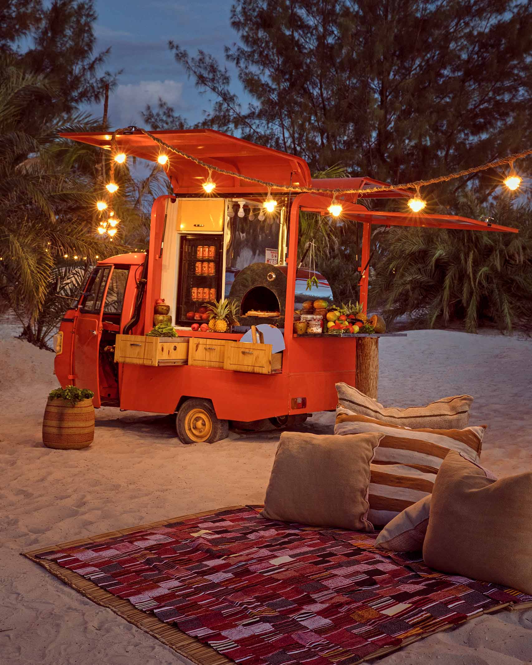 While it would have been no effort to while away our stay in our residence, we ventured out for sustenance and adventure. In keeping with Kisawa Sanctuary as a whole, the cuisine is next level, and I feasted like a spoilt princess. Meals can be taken in the permaculture garden, strung with lanterns and tangles of passion-fruit vines, in the impressive Wine Room or on the beach, beside a warming bonfire. An old tuk-tuk (once used as a taxi in Vilankulo) is reborn here as a food truck serving Neapolitan-style pizzas. It can even be driven straight up to your residence, where the pizzaiolo will prepare your order for you.