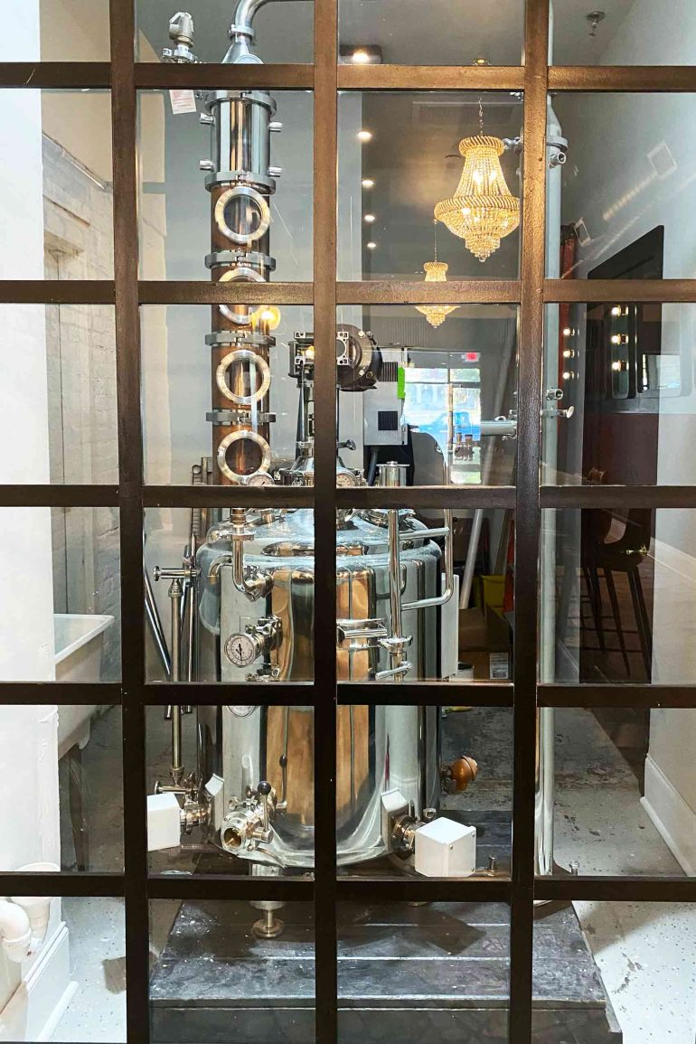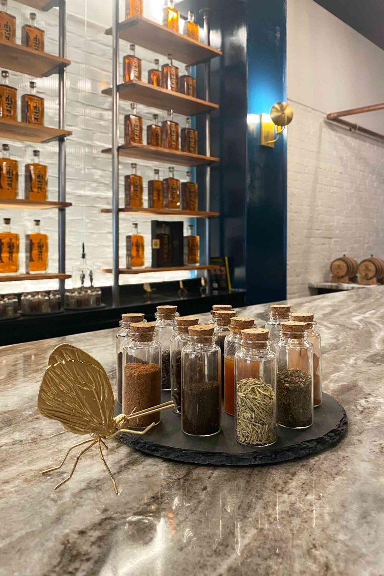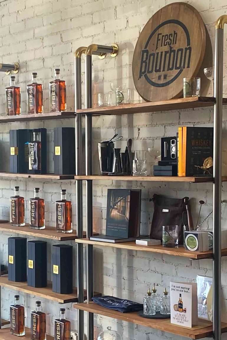 Fresh is the answer to the demands of a new, diverse generation of bourbon drinkers. While others are interested in the ‘Napa-fication’ of bourbon, it seems Fresh is more concerned with the ‘Soho-House-ification’ of the spirit. Their one (currently) product – created from their own mash bill recipe – is bottled like perfume, in clear glass. The etched-on label features a silhouette of both binary genders, to demonstrate that this is something for everybody. Their tasting room, right next to Thoroughbred Park, is hidden behind theatrical curtains that open up into a contemporary space akin to a luxury hotel bar, complete with crystal chandeliers, white marble countertops and dark wood wall panels. The way they present their product is extraordinarily refined, and their education is sensorial, based on getting people to smell botanicals and spices. They bring in diverse cultural references – butterflies for example, in tribute to Muhammad Ali. The lighting in Fresh’s bottle is newly captured; I sense that an exciting journey lies ahead for them.