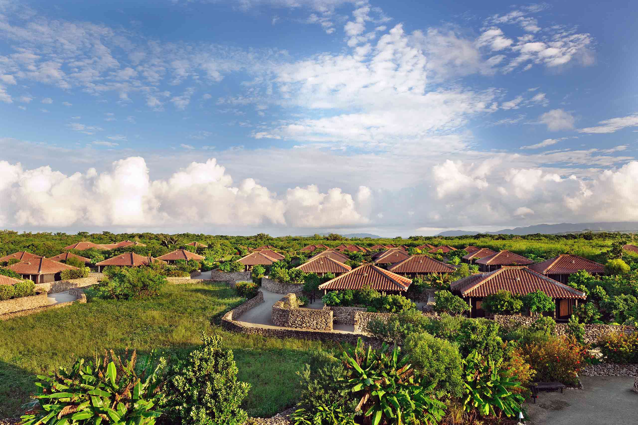Aerial view of Hoshinoya Taketomi Island, Okinawa, Japan