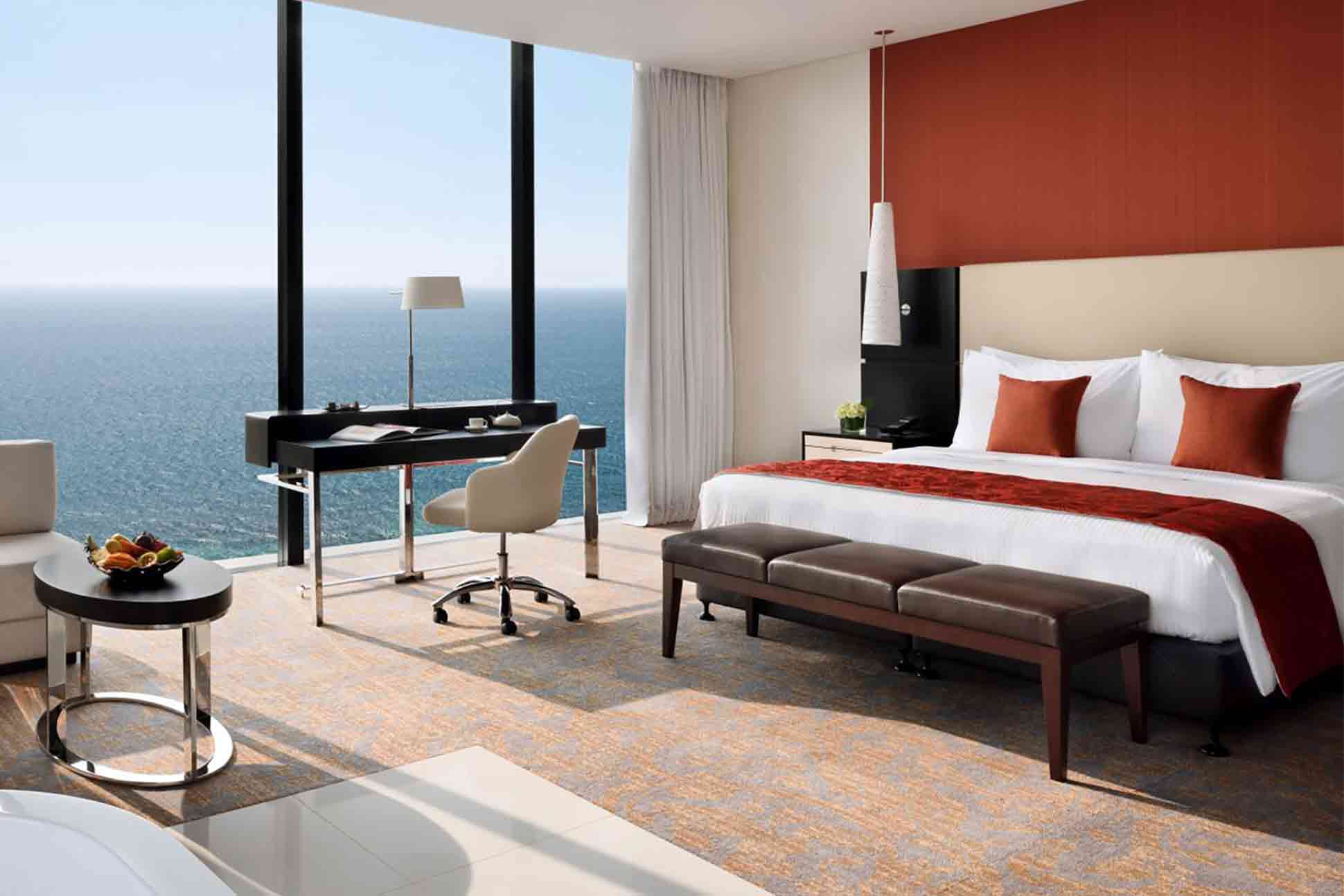 The towering landmark over 24 floors offers contemporary luxury, rooms are stereotypical to corporate hotels, but their floor-to-ceiling windows offer stunning views. In fact all parts of the hotel afford guests with the view, including the property’s well-equipped gym and private lounge for Mövenpick’s and Accor loyalty customers.