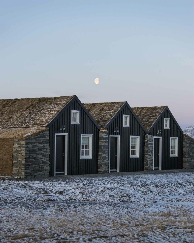 William Morris documents these turf houses earnestly in his journals and, while the ones at Torfhús Retreat have been modernised to be ultra-lux versions of the originals he saw, they are built to exacting architectural standards. Their exterior walls, made of basalt stone from a nearby quarry, are laid painstakingly by hand. The grassy roofs are remarkable, taking on a different character with each passing season – dotted with wildflowers in summer and cloaked in mossy green or pure white snow in winter, they melt seamlessly into the landscape.