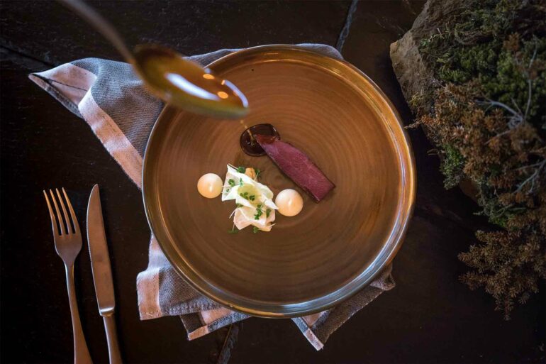 Rounding off the characterful personality of its dwellings is the retreat’s culinary prowess. Award winning chef Thorarinn Eggertsson, known affectionately as Tóti, heads up the kitchen. His theatrical and unconventional Icelandic-Asian fusion cuisine is extraordinary – each bite a wow – and most of his ingredients are local, coming from within 20 miles of the retreat. Each night an innovative tasting menu is presented. The volcanic-ash tempura and kabayaki Icelandic beef short-ribs form what is the retreat’s best-kept secret, available only to in-house guests, making it very special indeed.