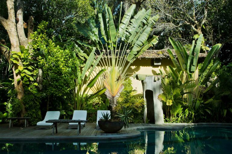 “It is important for me that UXUA connects with nature. In the hotel, I exaggerate the lushness of the forest that our gardens are integrated into. I try to find native plants – the stranger the better – to put in my garden. The grounds are now becoming something of a ‘garden of Eden’.” Wilbert enthuses about nature with the passion of an artist and the eye of a gardener – a fervour that spills over into the interiors of the property, with indoor-outdoor bathrooms and trees growing into the inside of the ‘casas’. “Nature informs 90% of everything I do, it’s in all the objects I design,” Wilbert explained. “A piece can start with me finding a single piece of wood and I will design something around it. Nature is also one of the main reasons why I came here. If you are looking at Trancoso from the beach, all you see is forest. Even if it does have a lot of houses concealed within it.”
